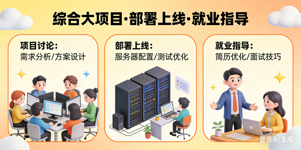 核心目标:整合全阶段技能,完成综合项目开发与部署,掌握求职技巧,顺利接轨就业。